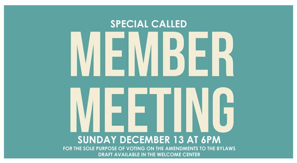 SPECIAL CALLED MEMBERS MEETING AT 6PM – VOTING ON AMENDMENTS TO THE BYLAWS – COPIES AVAILABLE IN THE WELCOME CENTER