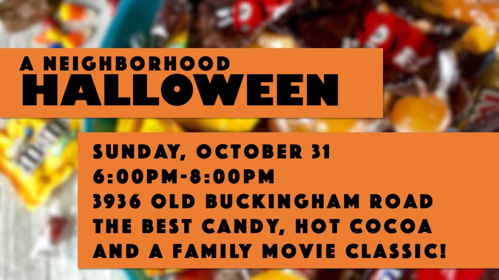There will be no Sunday Night School this Sunday as we will be reaching out to our community with our annual tradition of Halloween Outreach at Jeff and Carol Beach’s home. Volunteers are needed at 5PM and we will be handing out candy and more at 6PM.