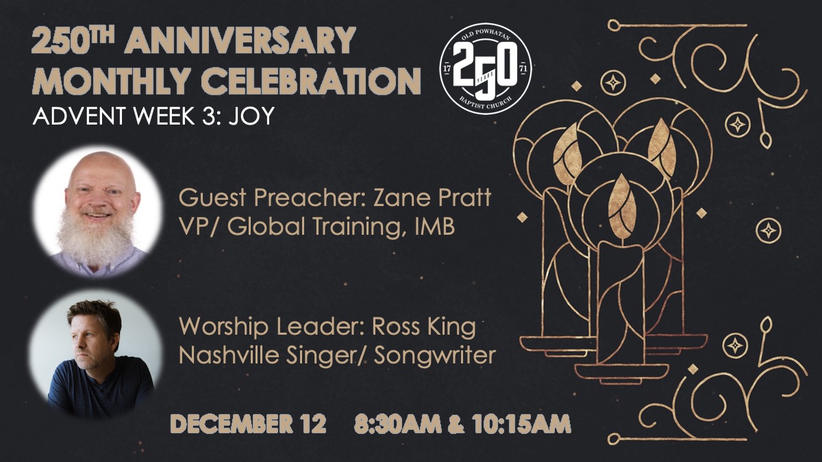 This Sunday we continue in our Advent season AND we conclude our year of celebrating 250 years of God’s faithfulness to and through OPBC! We have special guests with us and it is going to be an amazing Lord’s Day together!