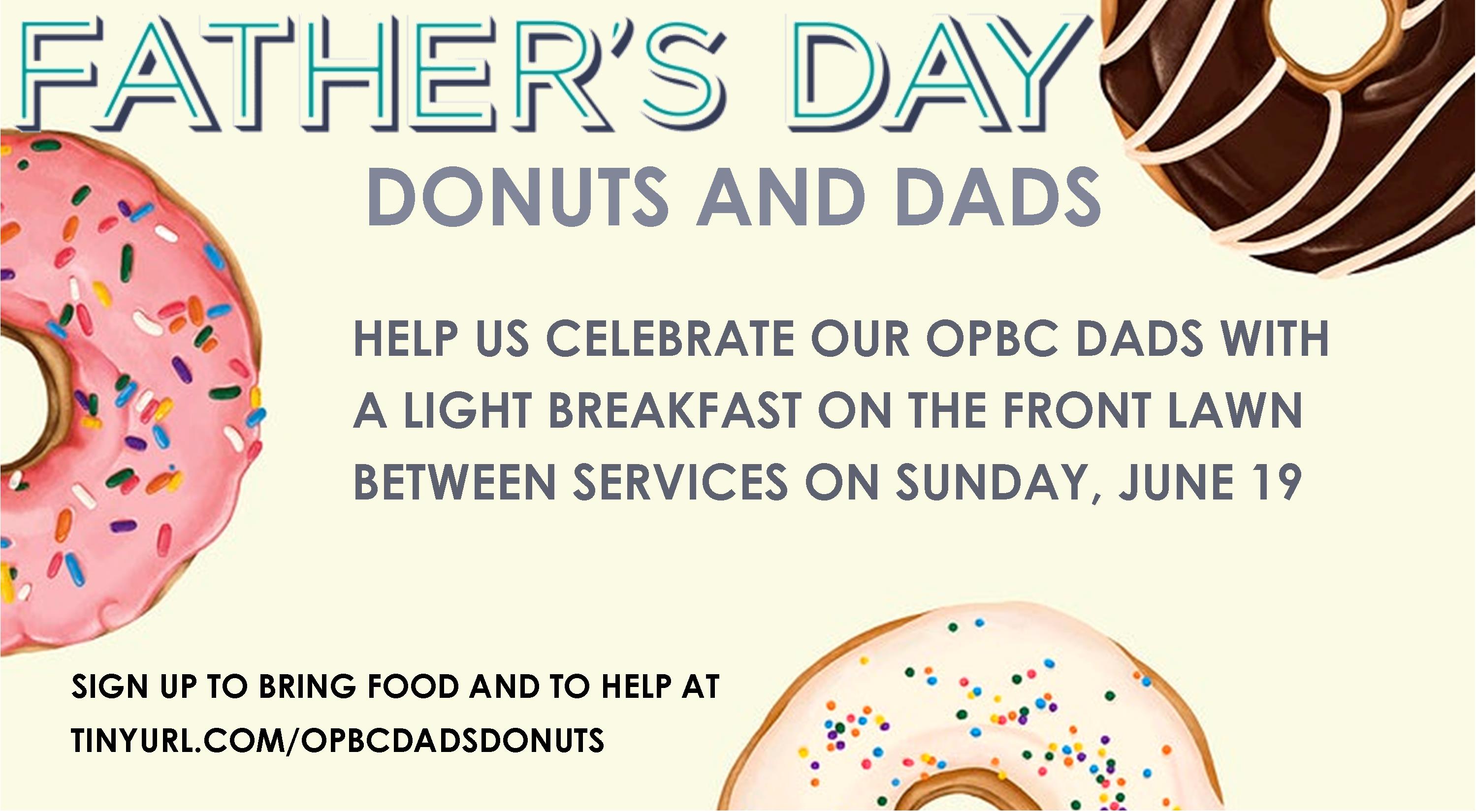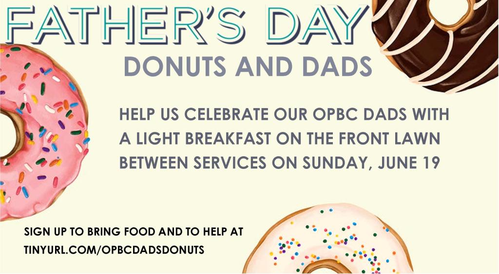 JOIN US BETWEEN SERVICES (9:45-10:15AM) ON THE FRONT LAWN FOR DONUTS WITH DADS AS WE CELEBRATE FATHERS.