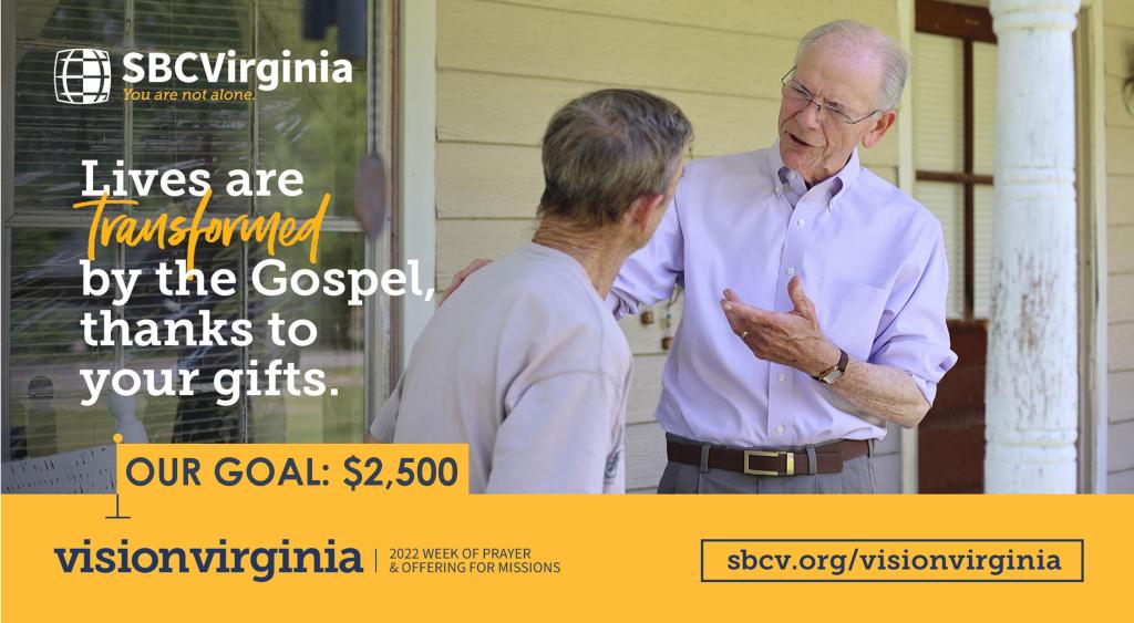 This Sunday ends our Week of Prayer and Giving for the Vision Virginia State Missions Offering. You can give this Sunday to support missions work, church planting, disaster relief and more throughout Virginia and the world.