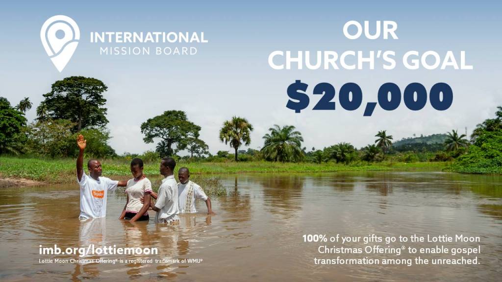 This Sunday also kicks off our giving for the Lottie Moon Christmas Offering for International Missions. Pray about how God will have you give this Christmas season. 100% of gifts the the Lottie Moon Christmas Offering go overseas for Gospel work.