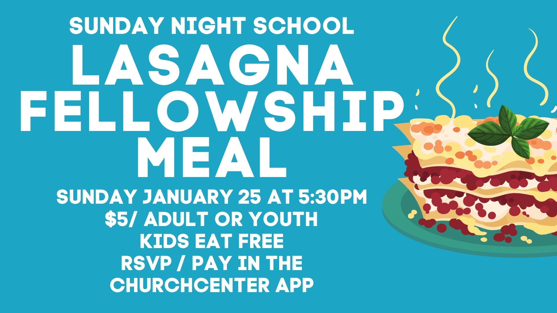 Then join us at 5:30PM for a Lasagna Fellowship Meal and Sunday Night School and Youth AFTER AFTER Christmas Party.